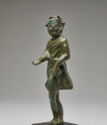 Magnífica estatua romana de mármol tallado del dios fluvial Nilo que se muestra en la tradicional postura reclinada, un manto sobre sus caderas y piernas, su sexo ligeramente mostrado, su brazo derecho descansando sobre su costado, el izquierdo sobre una urna volcada, el torso desnudo con una musculatura bien definida, la larga barba y el cabello evocan la forma de cañas acuosas. La figura de un cocodrilo aparece a sus pies. Los dioses del río eran, como su nombre indica, deidades que se cree que encarnaban los grandes ríos del mundo antiguo. Con una forma lánguida distintiva, eran representaciones populares en todo el antiguo Mediterráneo, donde se podían encontrar en villas ricas o monumentos públicos, normalmente de espaldas a la pared cuando una fuente emergía de un ánfora situada en el regazo del dios. Este ejemplo, aunque modelado en bulto redondo, probablemente se usó en este contexto. Debido a su popularidad en las provincias (donde había un acceso limitado a escultores expertos), muchos ejemplos sobrevivientes parecen estar tallados de forma más tosca. Sin embargo, este ejemplo, es un buen ejemplo de la fina escultura de época romana Antoniana / Severa.